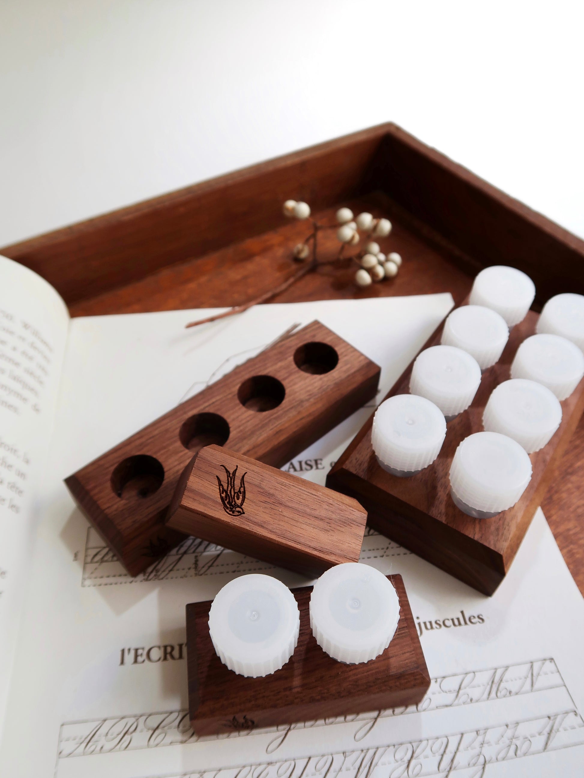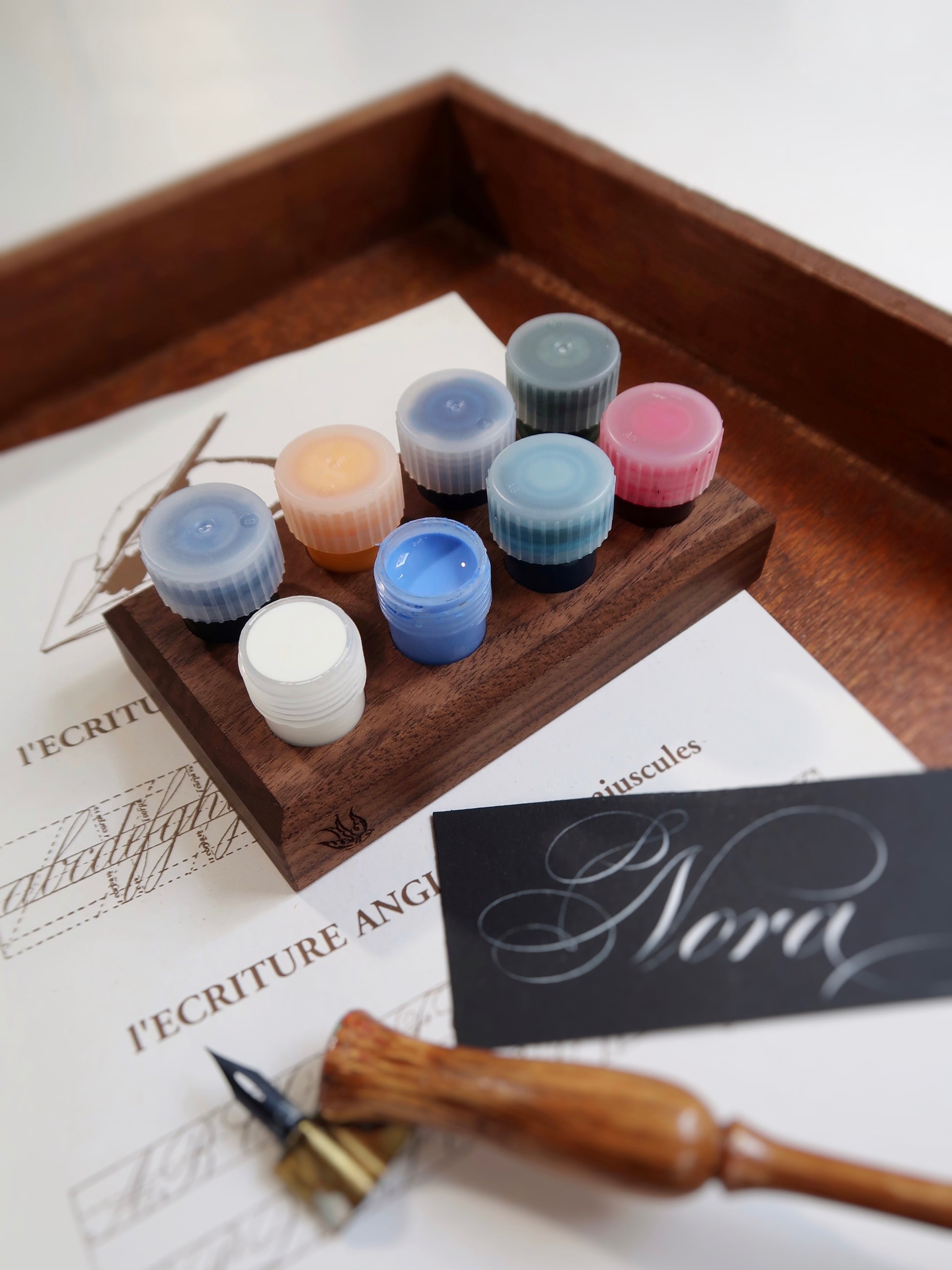 Dinky dip holder with from 1-8 slots. For carrying your favorite ink on the go.